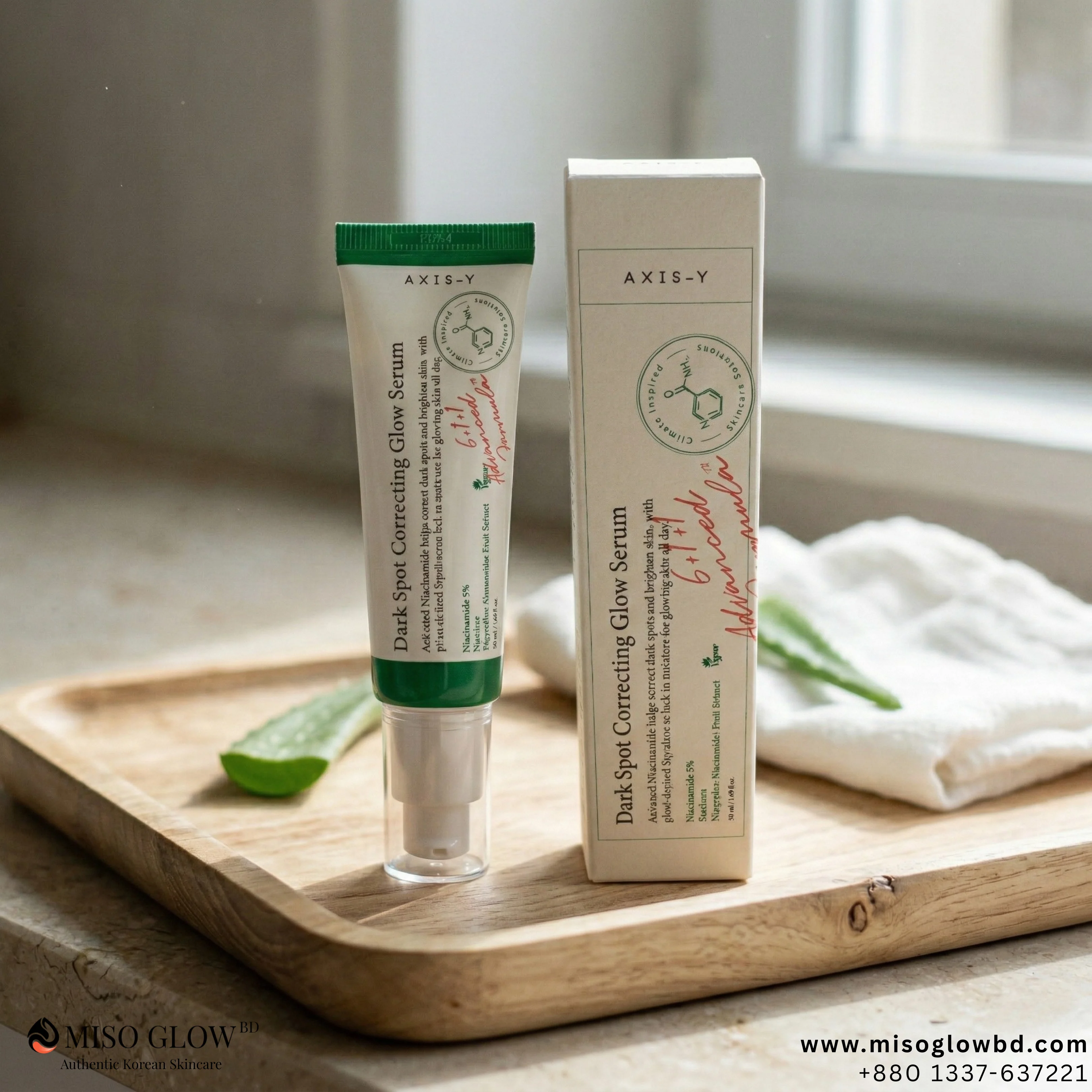 AXIS-Y Dark Spot Correcting Glow Serum is a bestselling Korean skincare solution formulated with 5% Niacinamide and plant-based ingredients to visibly reduce dark spots and restore your natural glow.