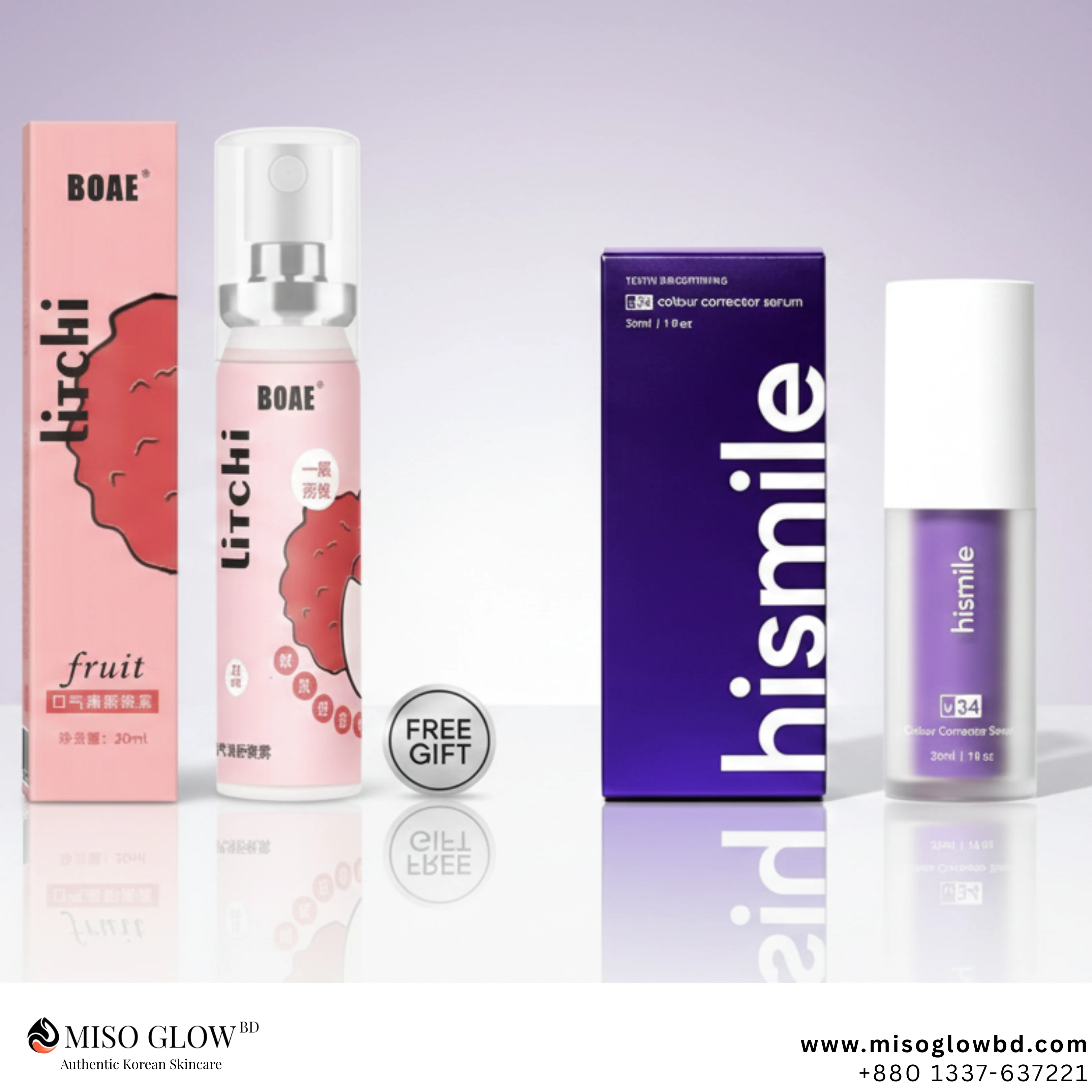 ✔ 1 x Hismile V34 Purple Colour Corrector Serum (30ml) ✔ 1 x BOAE Litchi Mouth Spray (20ml) – FREE